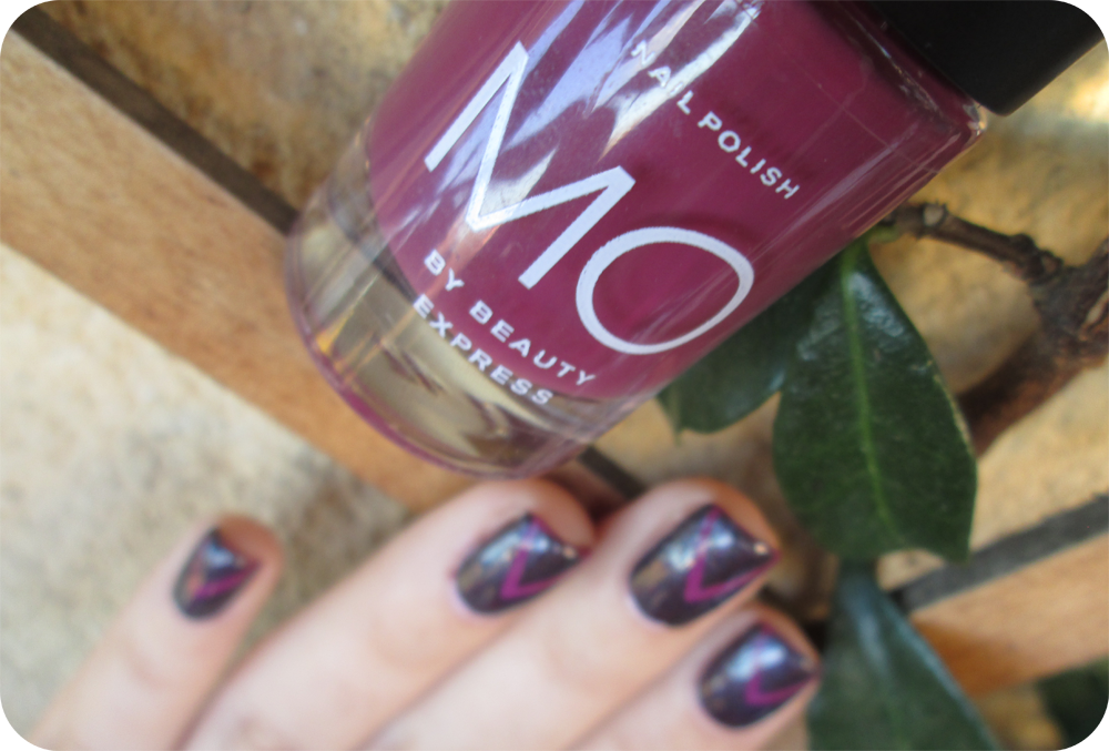 - Pintamos todas las uñas del esmalte berenjena. Yo he usado el #05 de MO. Dejamos secar.